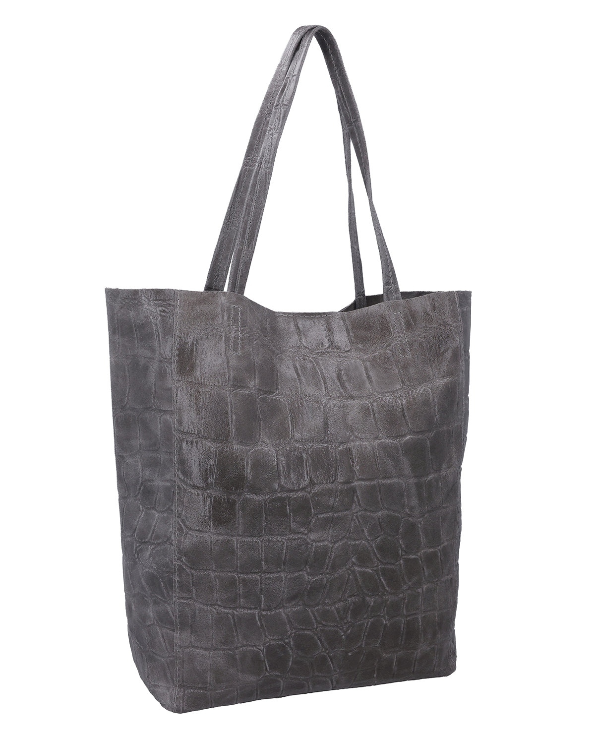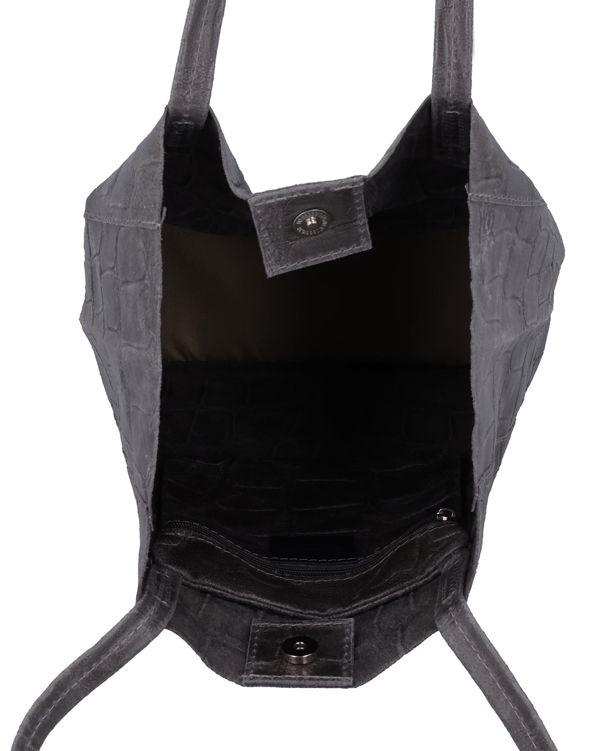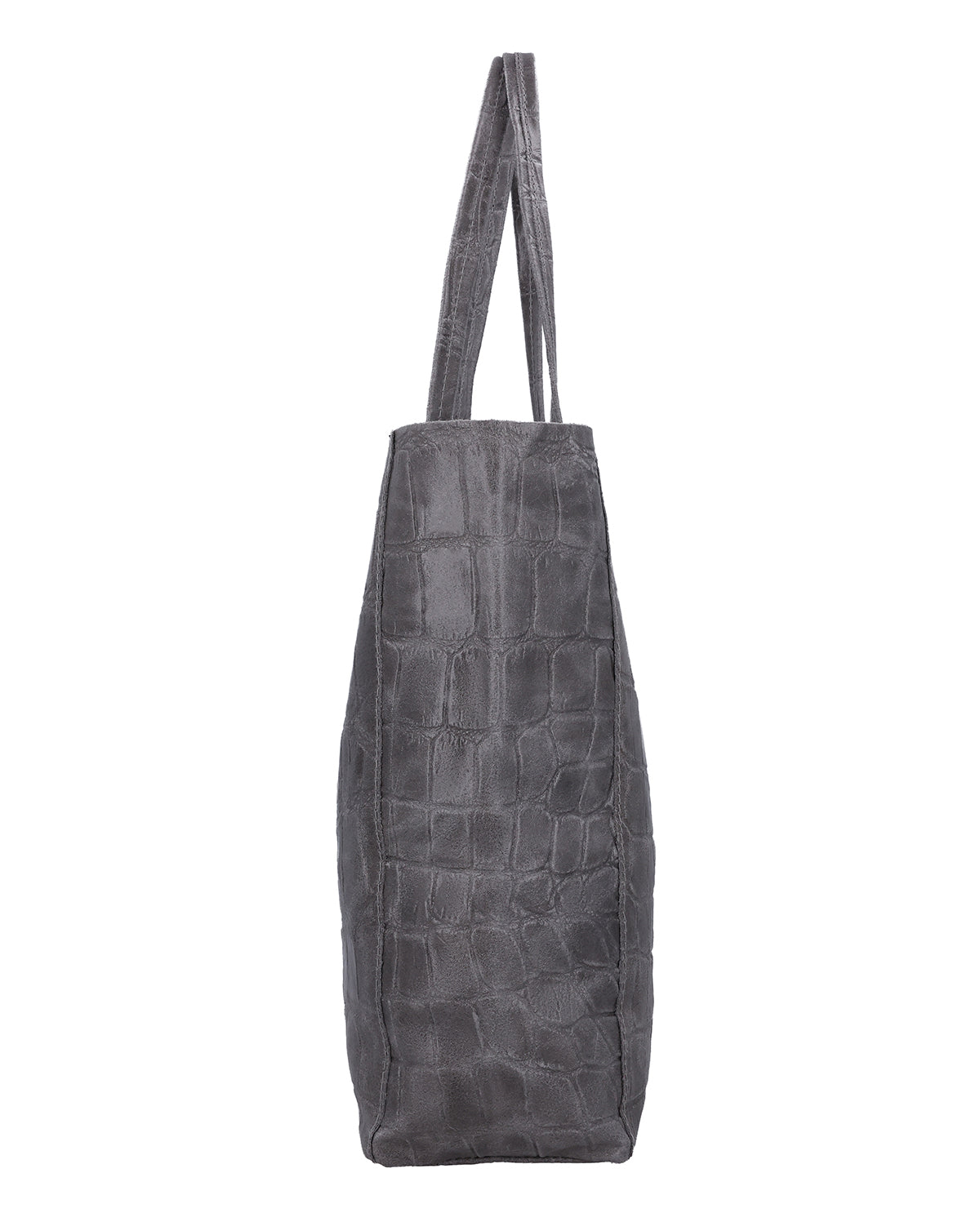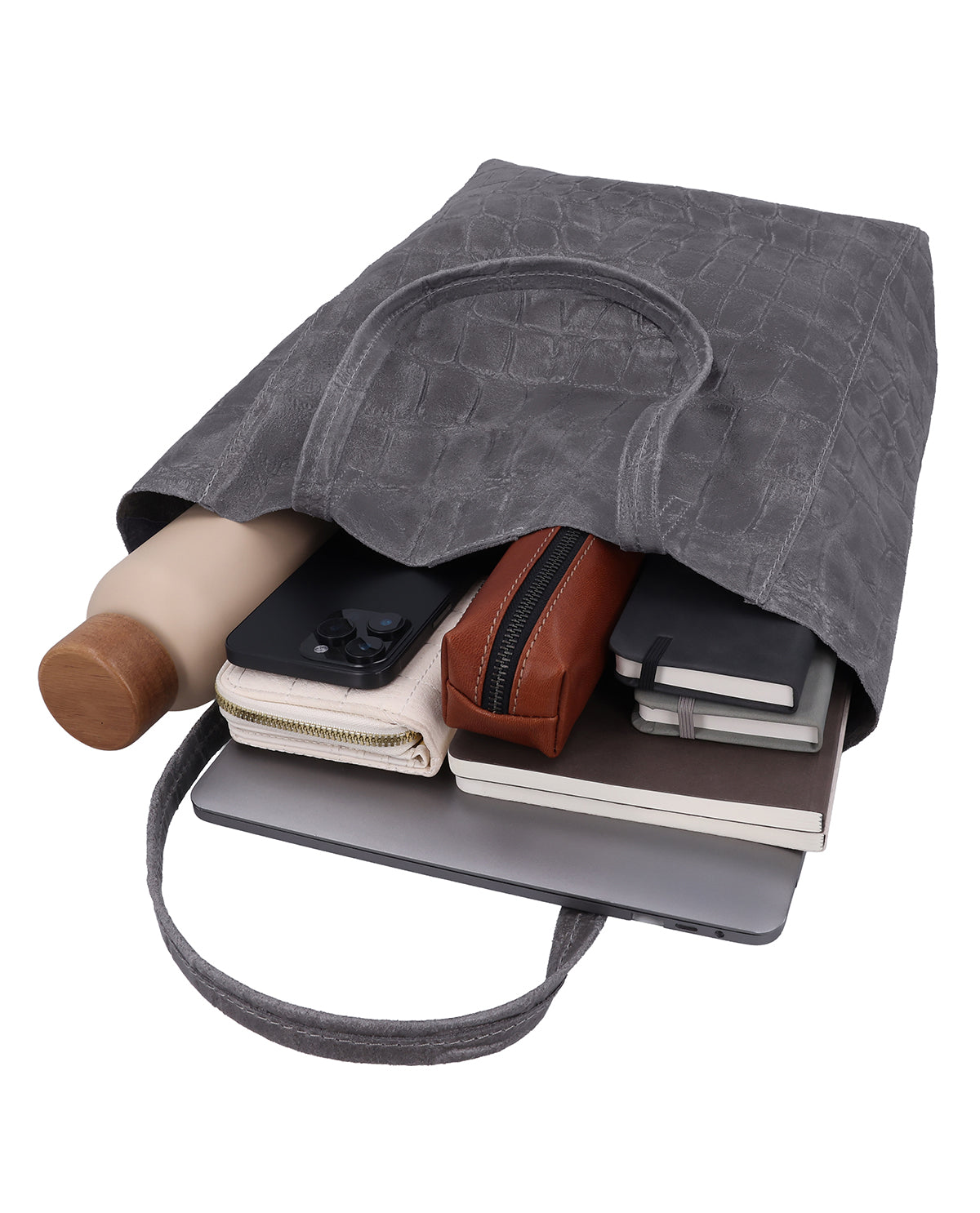 The “Vilma” handbag is a gray leather handbag with a crocodile-look finish for women that impresses with its clean lines. It’s a reliable companion for everyday life—whether you’re strolling through town, at the office, or heading to a spontaneous get-together. The magnetic main closure allows for quick and easy opening and closing, so you can easily access your essentials at any time. Thanks to its minimalist design, “Vilma” is versatile and effortlessly adapts to your style.