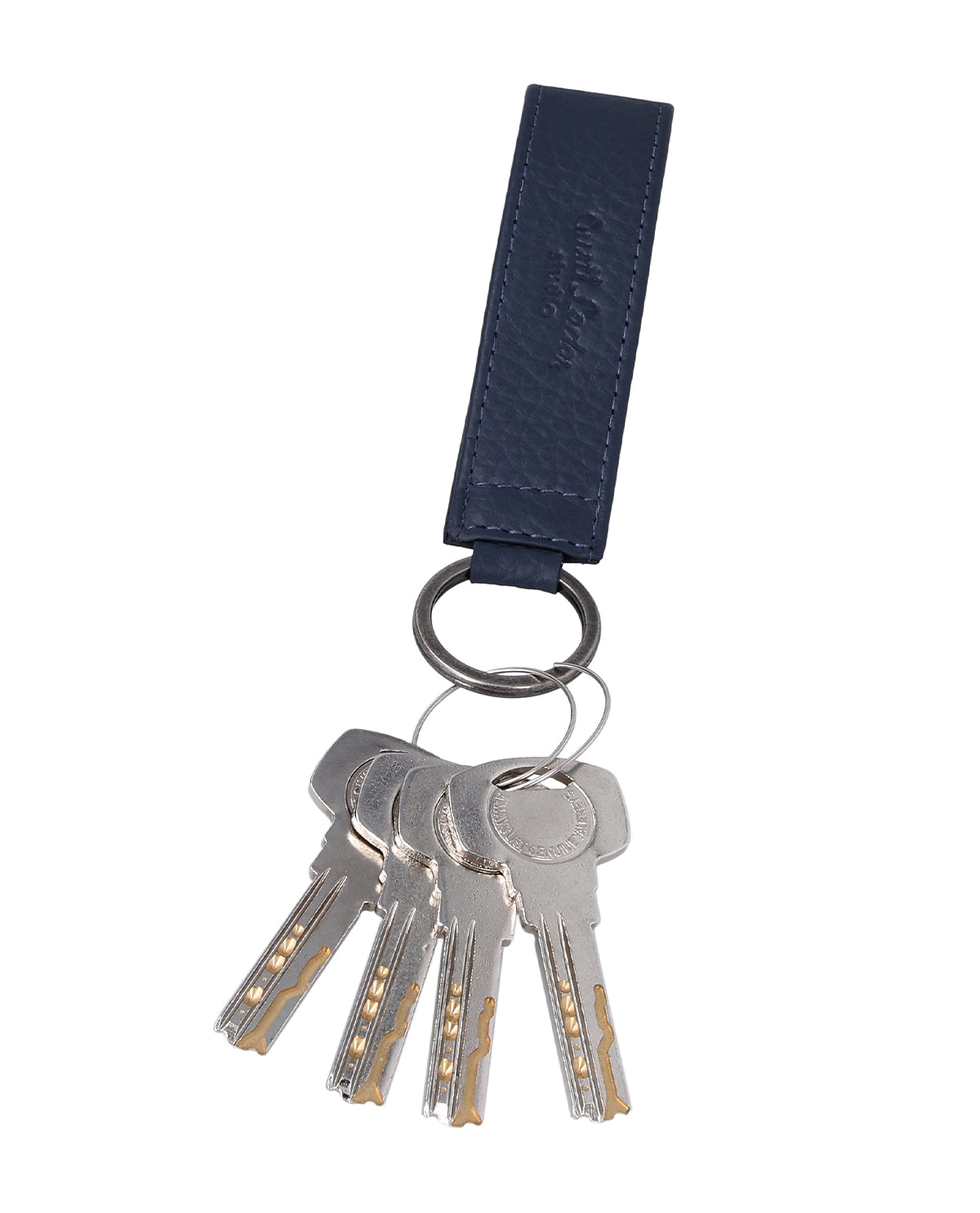 The "Miran" key ring is a blue leather accessory for men and women that impresses with its clear shape and minimalist design. The simple design has a timeless look and easily adapts to different bags or key rings. Thanks to the sturdy metal ring, your keys remain securely attached and always within reach. "Miran" stands for uncomplicated functionality in a compact format.
