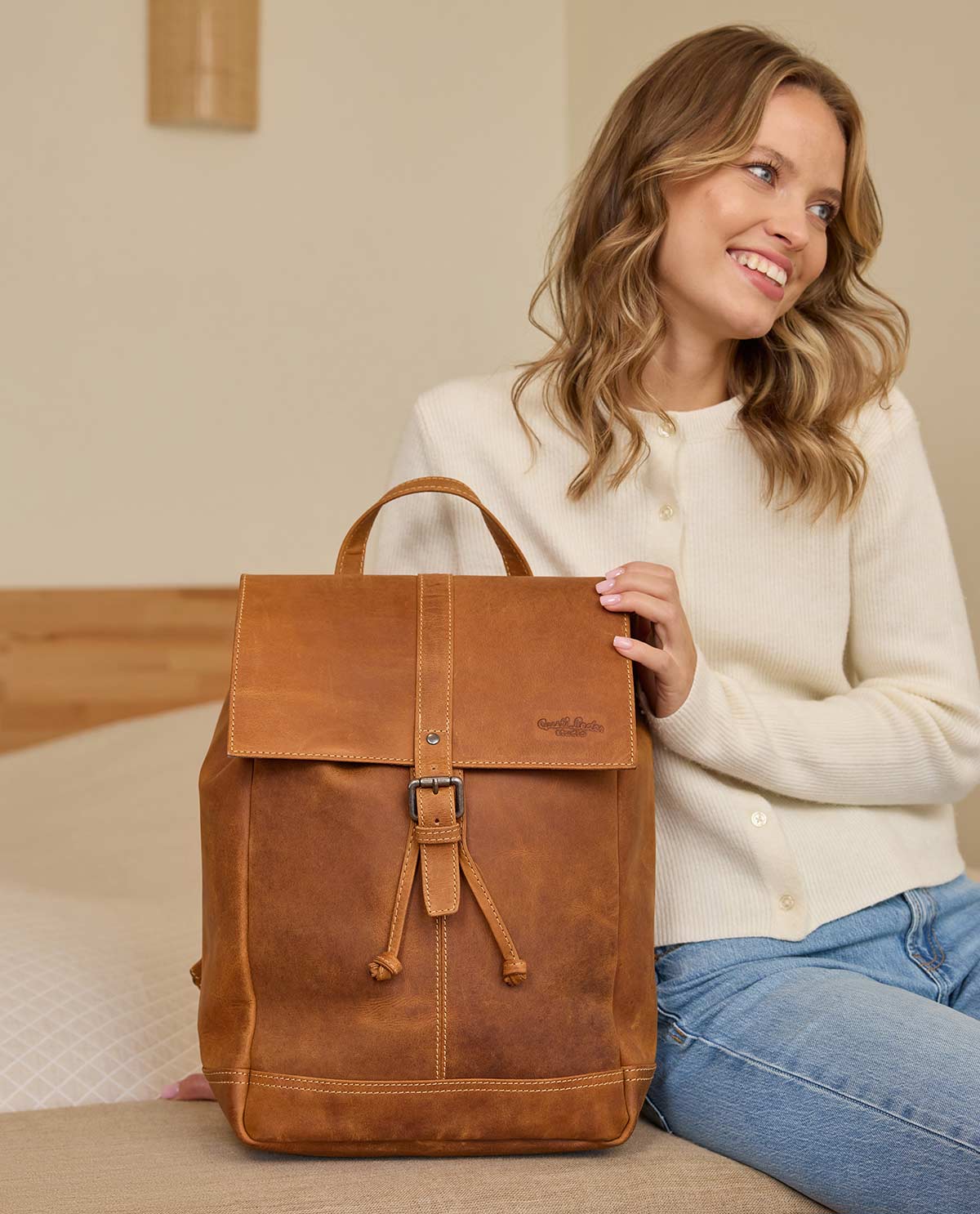 “Jaime” is a classic rucksack made of sturdy leather that will win you over with its timeless design and functionality. No matter if you’re off on a spontaneous weekend trip, heading to university or the office by bike or on foot, “Jaime” is the perfect companion for every situation. This charismatic backpack is a true fashion statement and a must-have piece.