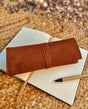 Pencil case leather pencil roll slim brown leather