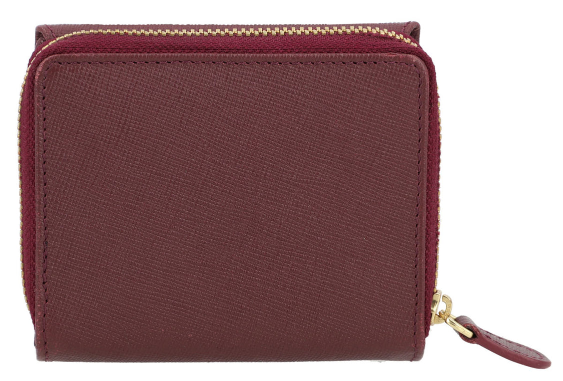 Inside, "Brigitta" features a bill compartment, a fold-out window, space for up to six cards, and a separate zippered coin pocket. This prevents your money from falling into your pocket. Made of high-quality cowhide leather with a saffiano design, the wallet closes with a snap fastener. Into your bag, ready to go—with the "Brigitta" wallet!