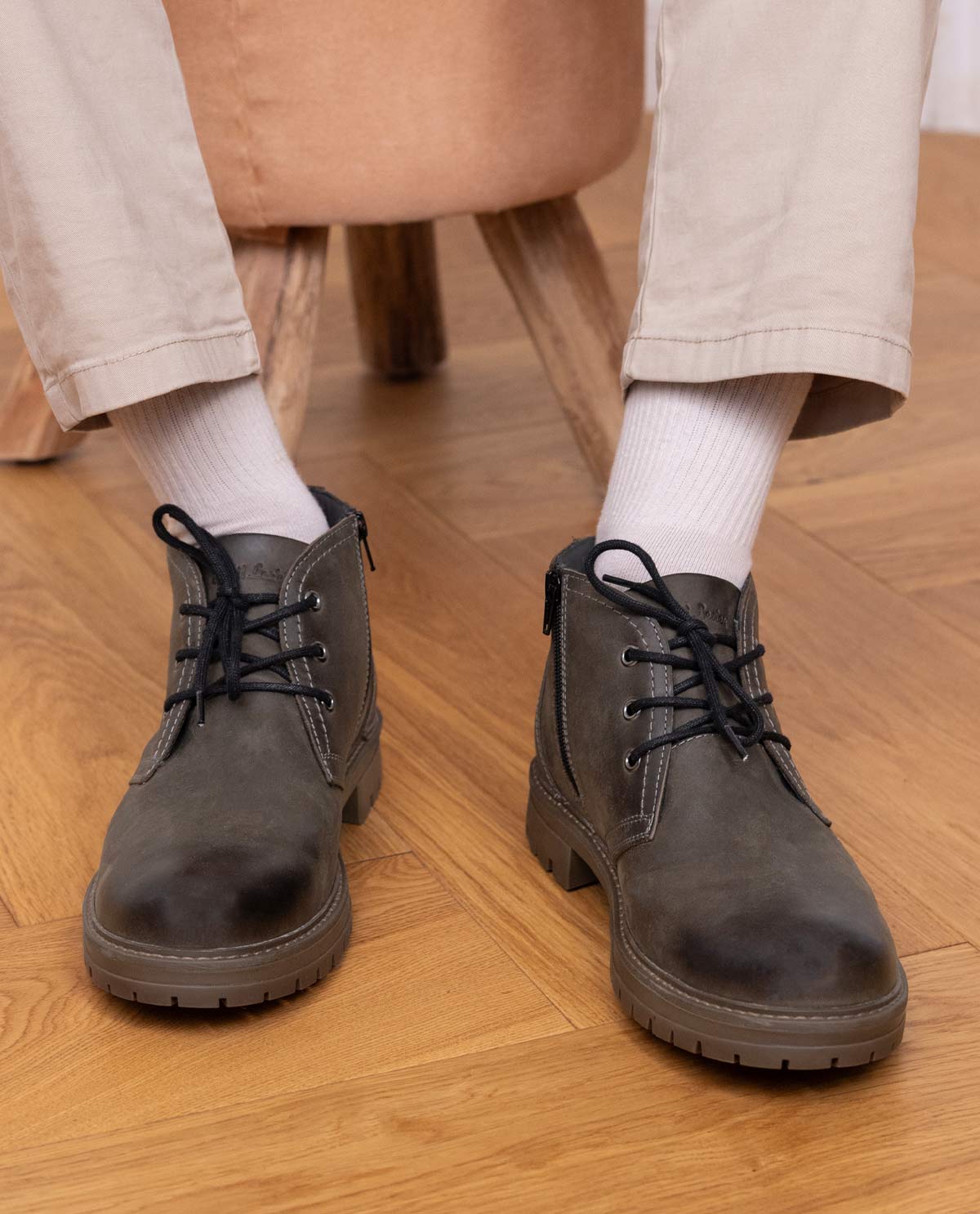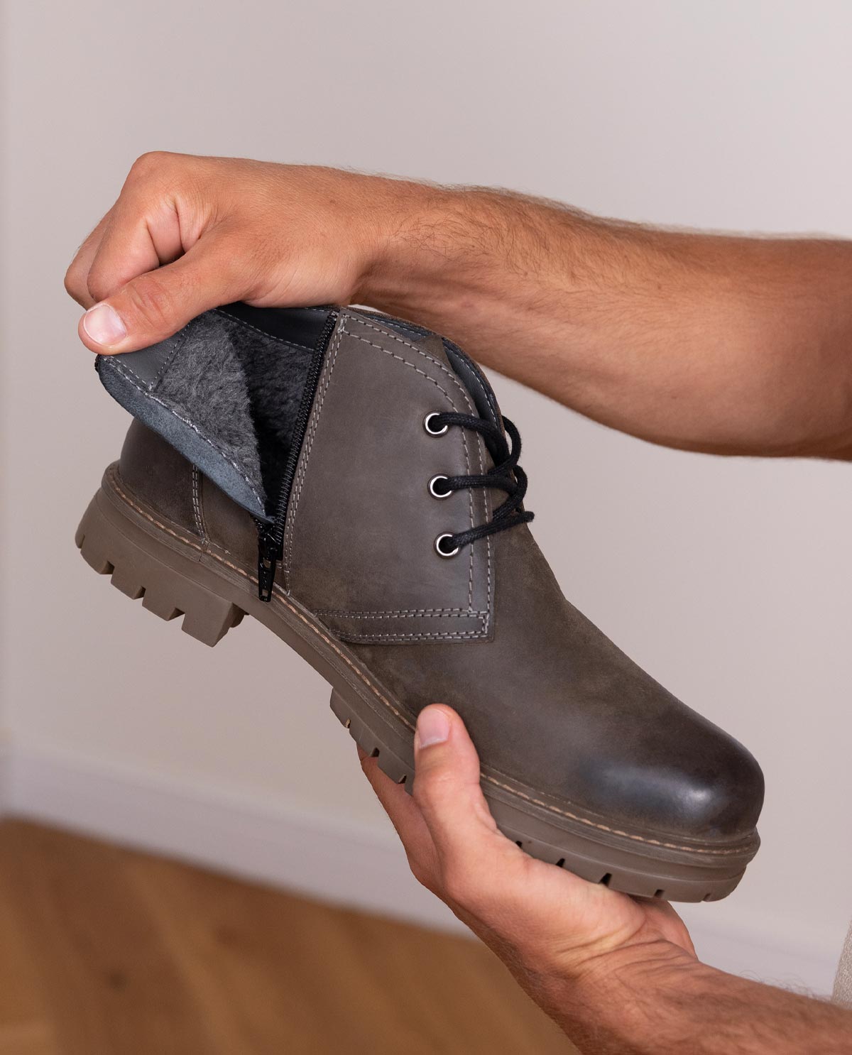 With "Peyman" you perfectly balance style and comfort – even on the coldest days of the year. The high-quality cowhide leather with a matte, gray surface and contrasting white stitching gives the shoes a modern yet classic look. The lace-up closure combined with a side zipper ensures maximum comfort and makes putting on and taking off easier. The subtly embossed Gusti Leather logo on the heel emphasizes the exquisite craftsmanship and timeless style of these winter shoes, which reliably accompany you through snow, rain, and cold.
