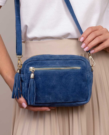 Storage bag organiser small leather bag womens blue leather - Made in Italy