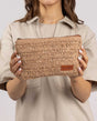 “Orman” es la bolsa de cosméticos ideal para quienes valoran el estilo y la sostenibilidad. Fabricada con rafia tejida a mano, impresiona con su fina estructura y su cálido tono marrón. La rafia es un material natural similar a la paja, obtenido de las fibras de una palmera, lo que la hace ligera, flexible y resistente. Este exclusivo neceser no solo es un accesorio elegante, sino también un compañero práctico para llevar a cualquier lugar. Los finos detalles de cuero en las cremalleras añaden un toque sofisticado y realzan su elegancia natural.