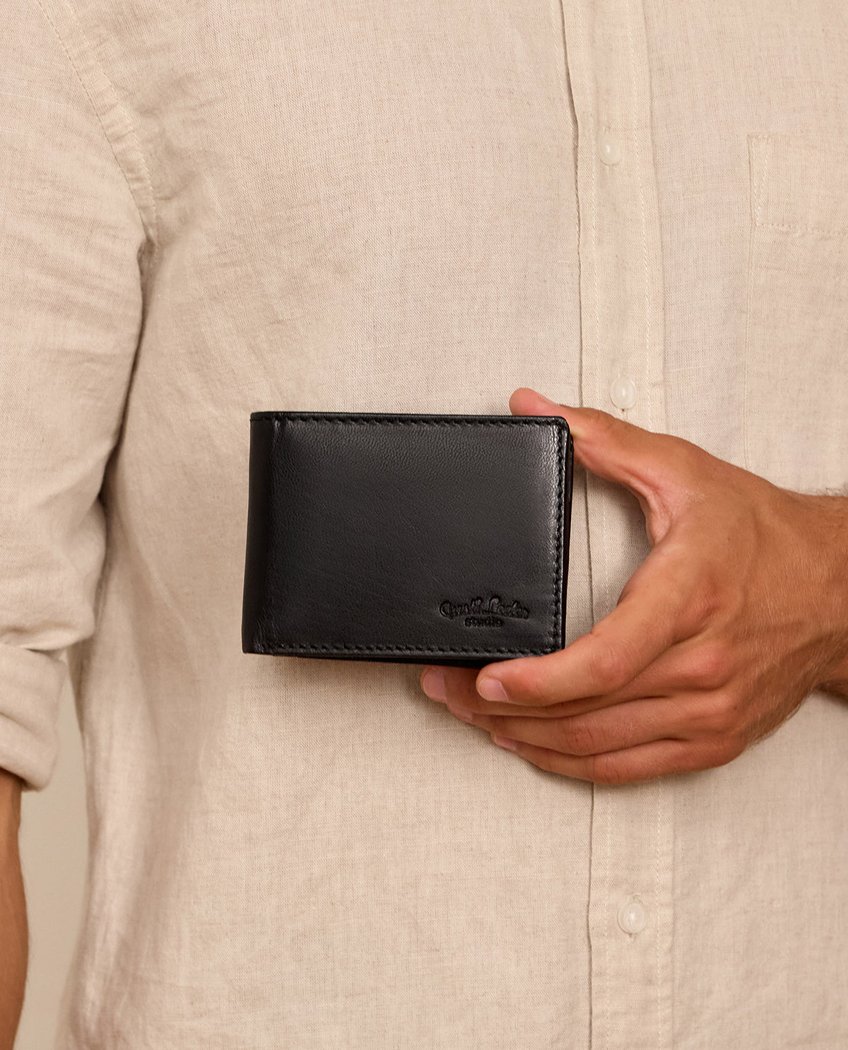 “Lewi” is the perfect place to keep your cash. This cool vintage leather wallet is the perfect companion for fashionable guys everywhere. He's made of high-quality cowhide leather, which makes him particularly sturdy. You can take on anything life throws at you with “Lewi”. He helps you handle the stress and makes sure you always look good. Is there anything more stylish than a sleek wallet? “Lewi” exudes classic and casual retro charm that never goes out of style.