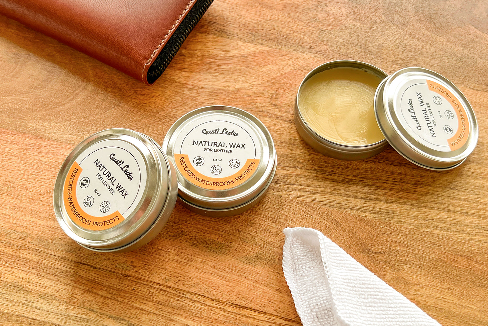 - Utiliza los productos para el cuidado del cuero de Gusti, como el bálsamo para cuero y la cera de abejas, para mantener tus accesorios en óptimas condiciones.