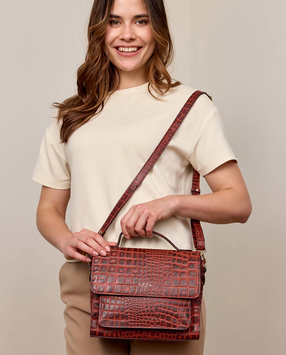 "Caren" es un elegante bolso bandolera que destaca por su cuero marrón de alta calidad y su diseño bien pensado. Ofrece la combinación perfecta de estilo y funcionalidad, adaptándose fácilmente a tu día a día. El bolso dispone de tres compartimentos separados, que te brindan una organización clara y te ayudan a encontrar tus cosas rápidamente. Ya sea para tu smartphone, tus llaves o tu maquillaje, con "Caren" tendrás todo lo que necesitas siempre a mano.