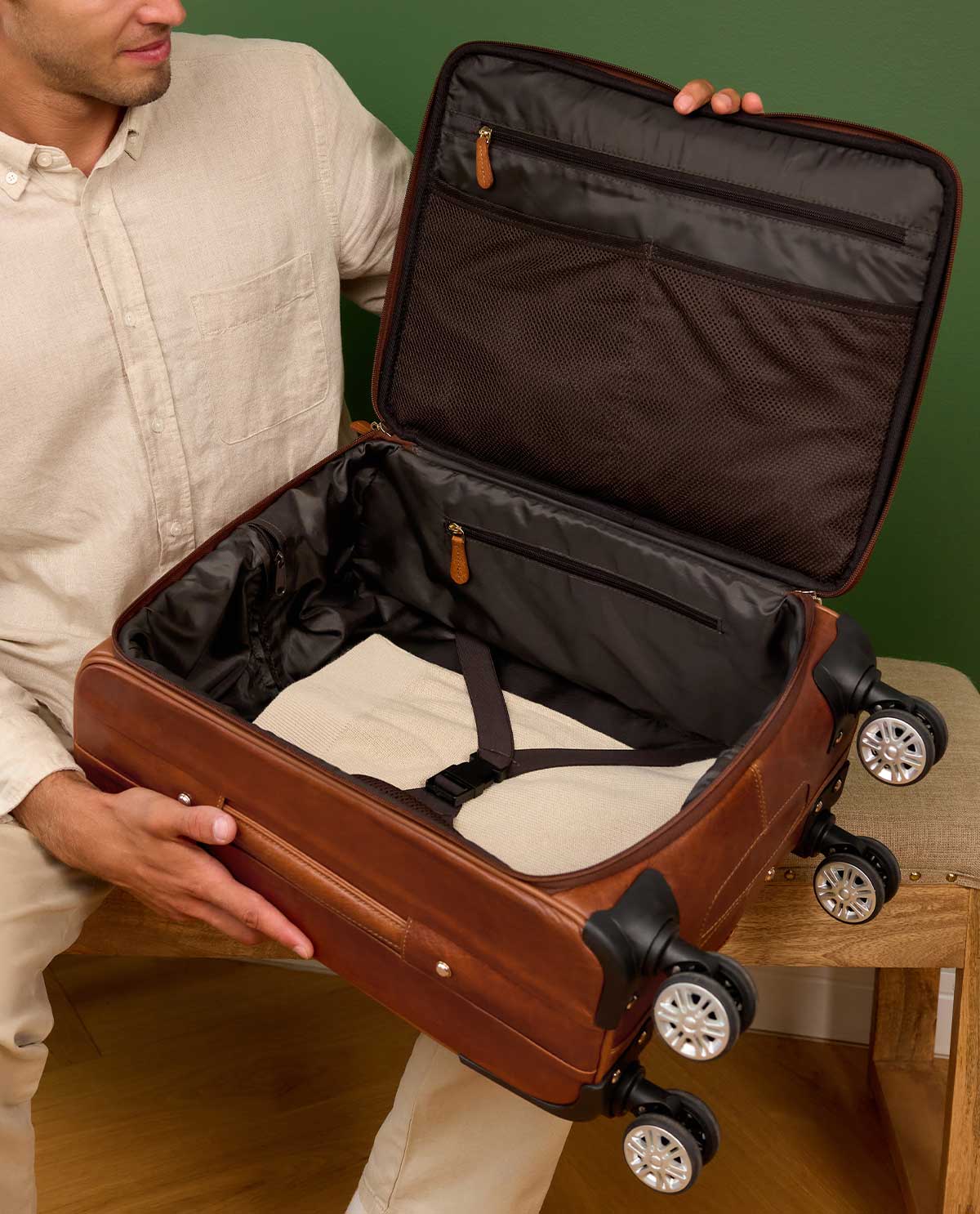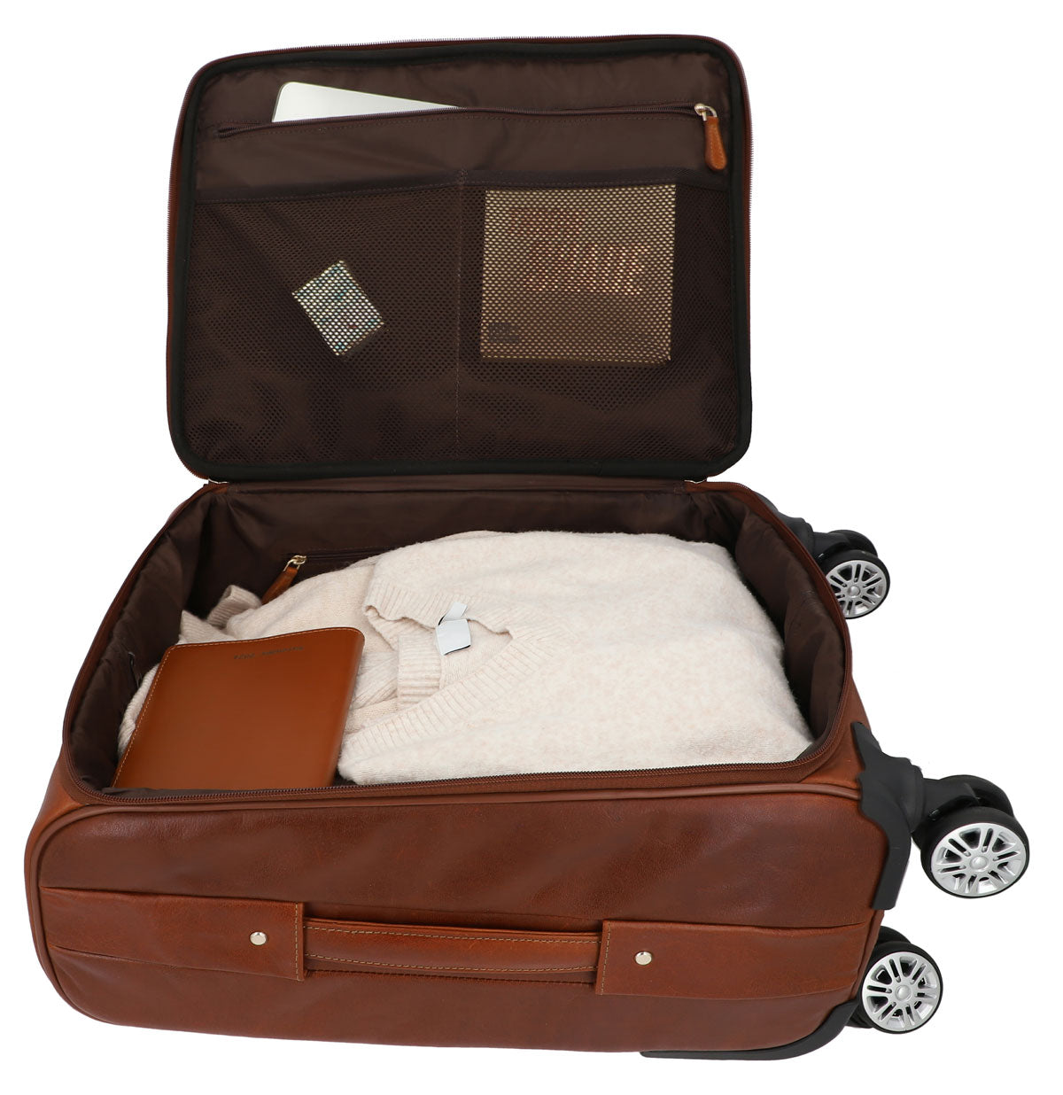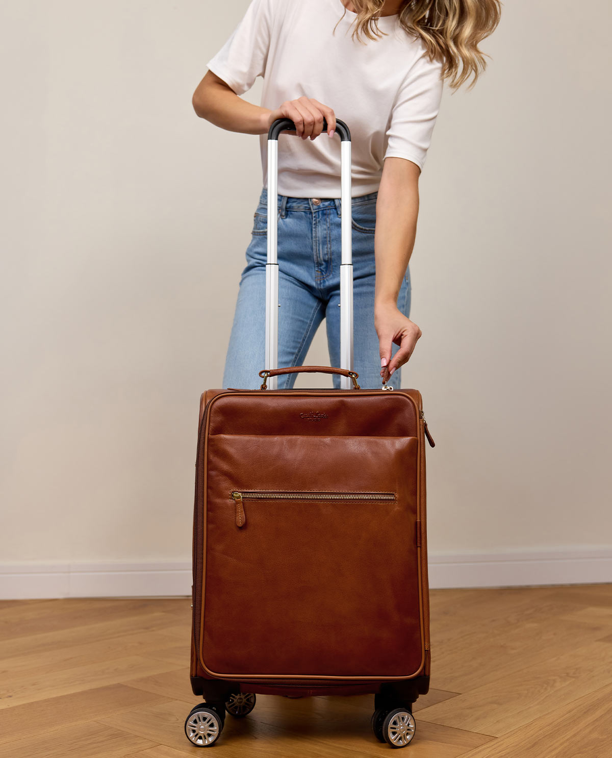 Esta maleta ha sido diseñada para viajeros exigentes como tú. Ya sea para un viaje de negocios, una escapada de fin de semana o unas vacaciones más largas, la maleta de cuero marrón te ofrece espacio suficiente para tu equipaje mientras mantiene un aspecto discreto y lujoso. Sus ruedas resistentes y su asa extensible garantizan un manejo sin esfuerzo, incluso en largas distancias.