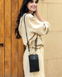 Bandolera bolso para móvil funda vintage piel negro cuero