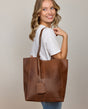 Bandolera cuero mujer shopper asas piel marrón cuero 13 L