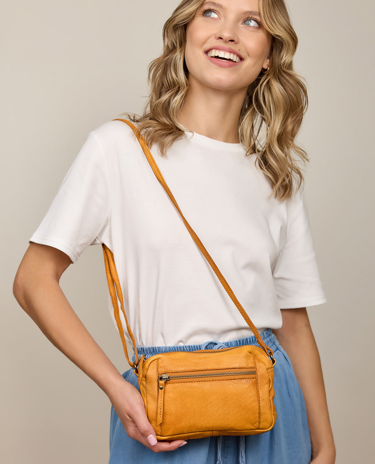 Con su diseño sencillo y compacto, "Dominic" complementa y enriquece cualquiera de tus looks sin pasar a un primer plano. El bolso de piel ofrece suficiente espacio para la cartera, el smartphone y las llaves. No importa si sólo necesitas comprar un par de cosas pequeñas o convertir la noche en día en una larga salida por los clubs: "Dominic" te acompañará con gusto y atraerá una o más miradas de reojo.