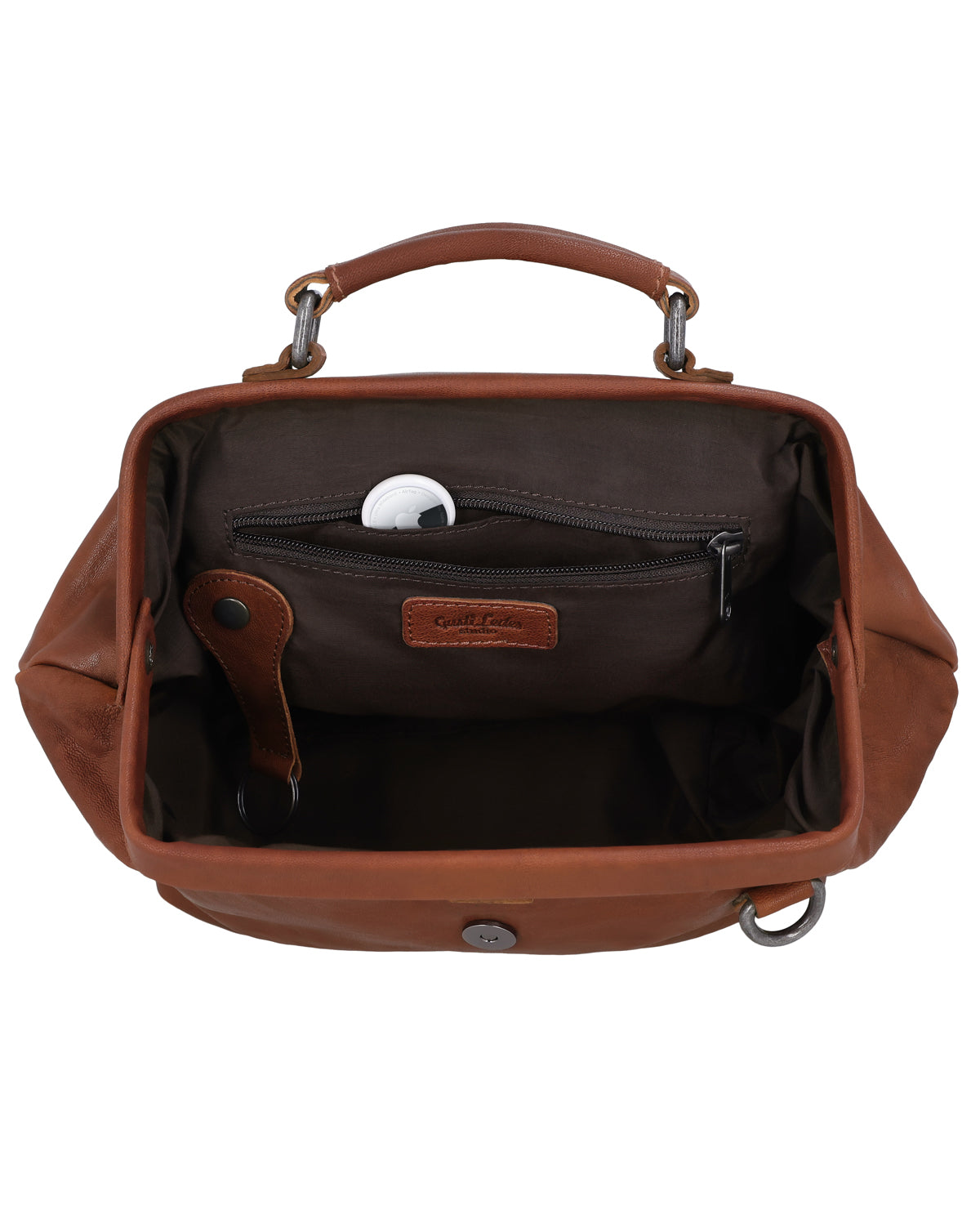 Para los amantes de los maletines clásicos de médico y comadrona, «Lillith» es un imprescindible. Reinterpreta este look único y lo combina con el tamaño de un bolso compacto. Práctico para el día a día: con el llaverointegrado, tendrás tus objetos esenciales siempre a mano, y un compartimento oculto para AirTag te dará una sensación de seguridad adicional cuando estés fuera de casa. Además, puedes llevar «Lillith» de dos maneras: de forma clásica en la mano o con la correa adicional como bolso cruzado. Inspirada en el estilo urbano de la gran ciudad de Berlín, «Lillith» combina estilo y funcionalidad.