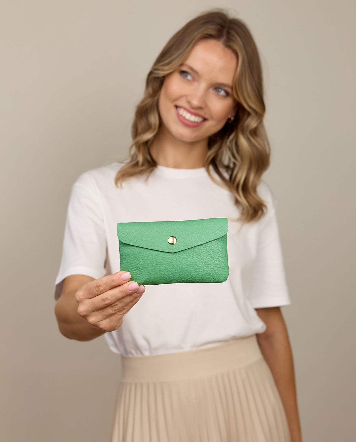 El diseño bien pensado de la "Anela" garantiza la máxima claridad. La bolsa está dividida en dos compartimentos principales que ofrecen suficiente espacio para tus tarjetas, billetes o recibos. Un compartimento adicional con cremallera asegura el almacenamiento seguro de objetos más pequeños. El logo en relieve de Gusti y la marca "Made in Italy" en el interior subrayan la calidad y el diseño elegante. Con la "Anela" tienes una solución compacta y práctica para guardar tus cosas importantes de manera segura y elegante.