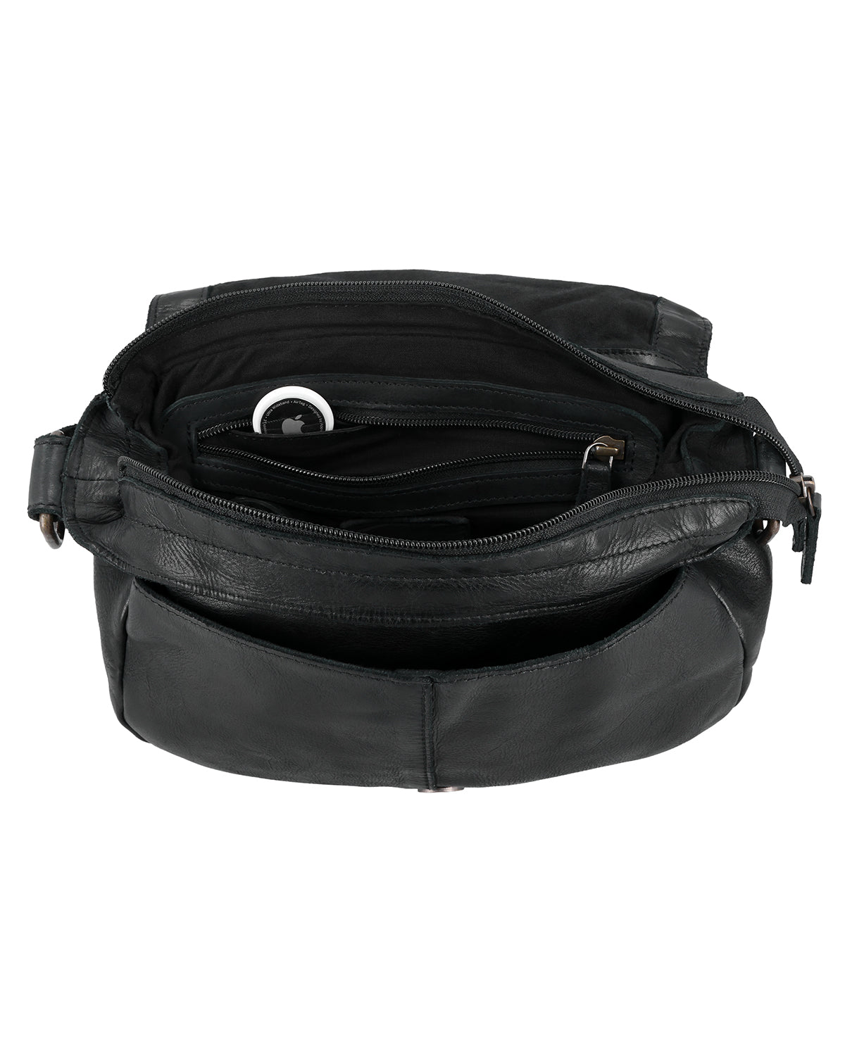 El pequeño bolso «Aliya» es un bolso de mano de cuero negro para mujer que llama la atención inmediatamente por su superficie trenzada. El cuero vacuno lavado tiene un tacto agradablemente suave y le da al bolso un aspecto relajado y de alta calidad. «Aliya» demuestra su funcionalidad en el día a día: un compartimento oculto para AirTag proporciona seguridad adicional, mientras que la correa ajustable para el hombro ofrece opciones de transporte flexibles. La combinación del cierre magnético en la parte delantera y la cremallera en el compartimento principal aúna comodidad y seguridad cuando estás fuera de casa.