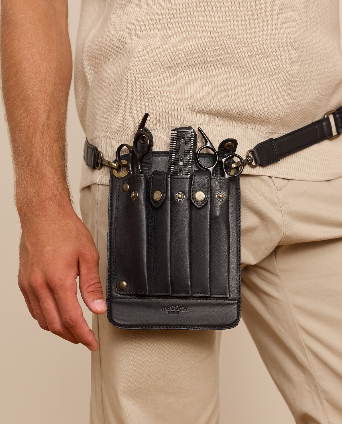 "Pino" se puede ajustar fácilmente a tus necesidades gracias a su correa de hombro ajustable, lo que te permite llevarla cómodamente al hombro o cruzada. Este bolso para utensillos no solo te proporciona una excelente organización, sino también la máxima comodidad para tener siempre a mano lo esencial durante una larga jornada de trabajo. Perfecta para peluqueros que valoran tanto la calidad como la flexibilidad en su día a día laboral.