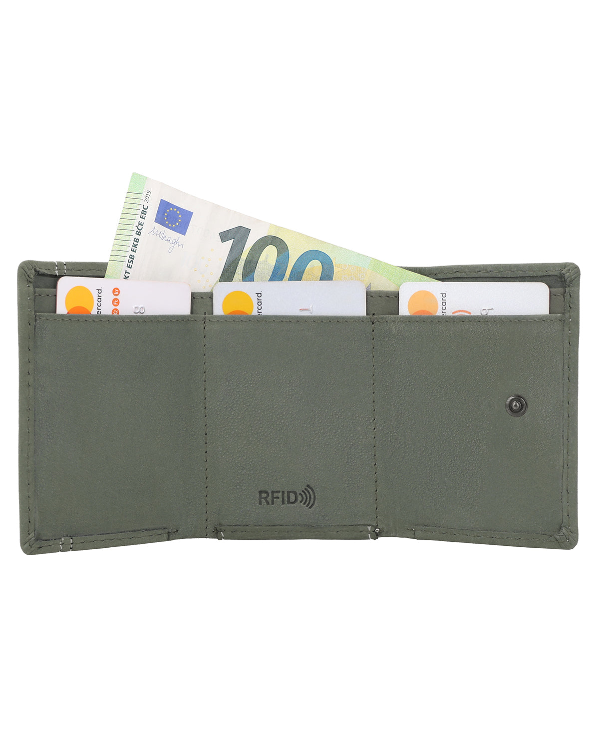 «Ronald» convence por su interior, con 3 compartimentos, un compartimento para billetes y un compartimento para monedas en la parte delantera, que se cierra con un botón a presión. Así, nada se cae y todo queda ordenado. Para los pequeños momentos del día a día, hay además un compartimento extra para una sola moneda, perfecto si quieres tener a mano rápidamente una moneda adecuada. Además, «Ronald» cuenta con un compartimento en la parte trasera para facilitar el acceso.
