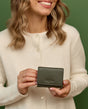Cartera de piel pequeña mini monedero tarjetero mujer hombre verde cuero