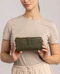 Este tarjetero está especialmente diseñado para todas tus tarjetas importantes, hasta 12 tarjetas. También hay espacio para tus billetes y un bolsillo separado para las monedas, que puedes cerrar con una cremallera y un broche de presión adicional. El cuero de vaca curtido de alta calidad de color verde da a "Vida" estabilidad y forma. Ya sea como accesorio de estilo o como regalo para un ser querido, ¡nunca te equivocarás con "Vida"!