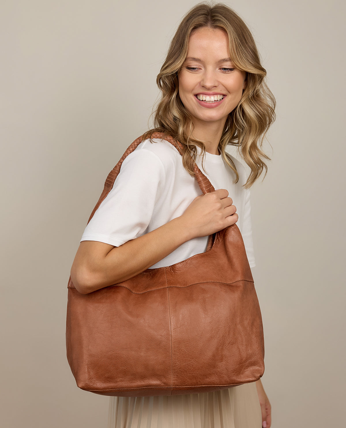 Curtido vegetal bandolera cuero bolso shopper piel asas marrón cuero
