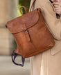Mochila cuero estilo mensajero antirrobo mujer hombre piel marrón cuero