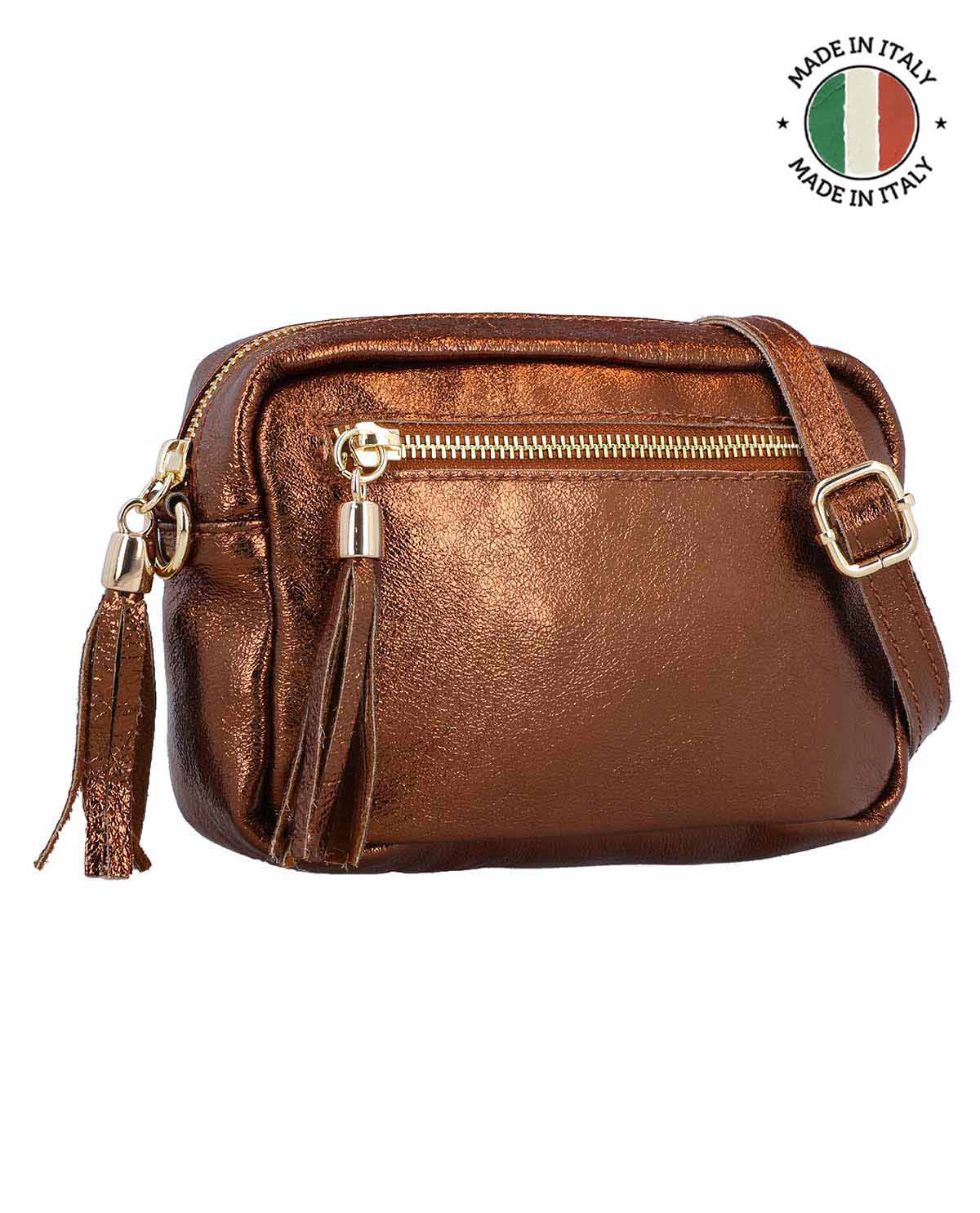 El bolso de hombro "Cariba" de cuero de alta calidad es el compañero ideal para cualquier mujer que aprecie tanto el estilo como la utilidad práctica. El seguro cierre de cremallera protege tus objetos de valor de manera confiable, mientras que el elegante colgante en el tirador del bolso añade un toque especial. En el interior, te espera un forro de tela claro y finamente estructurado, que no solo se ve elegante, sino que también te permite tener una visión clara de tus esenciales. Además, encontrarás allí un discreto y finamente grabado logo "Made in Italy" y un parche de grabado integrado que ofrece espacio para tu dedicatoria personal. Así, "Cariba" se convierte en un accesorio que no solo es bonito, sino también individual.