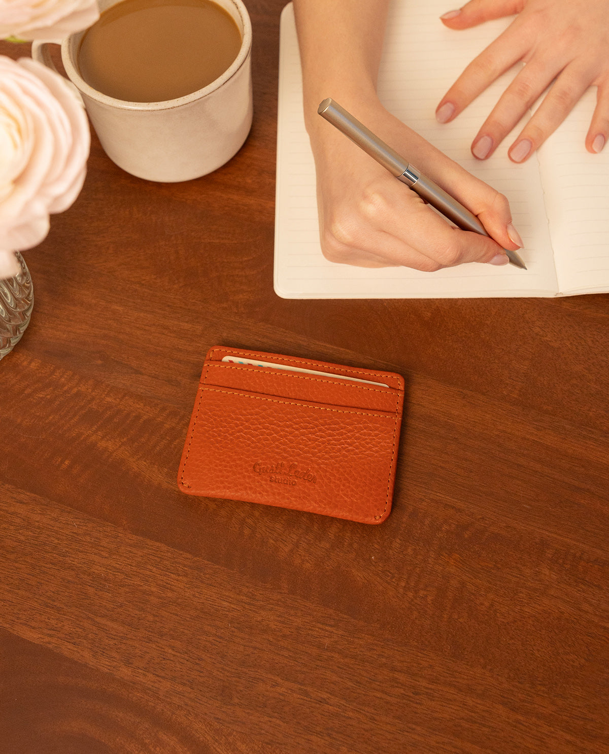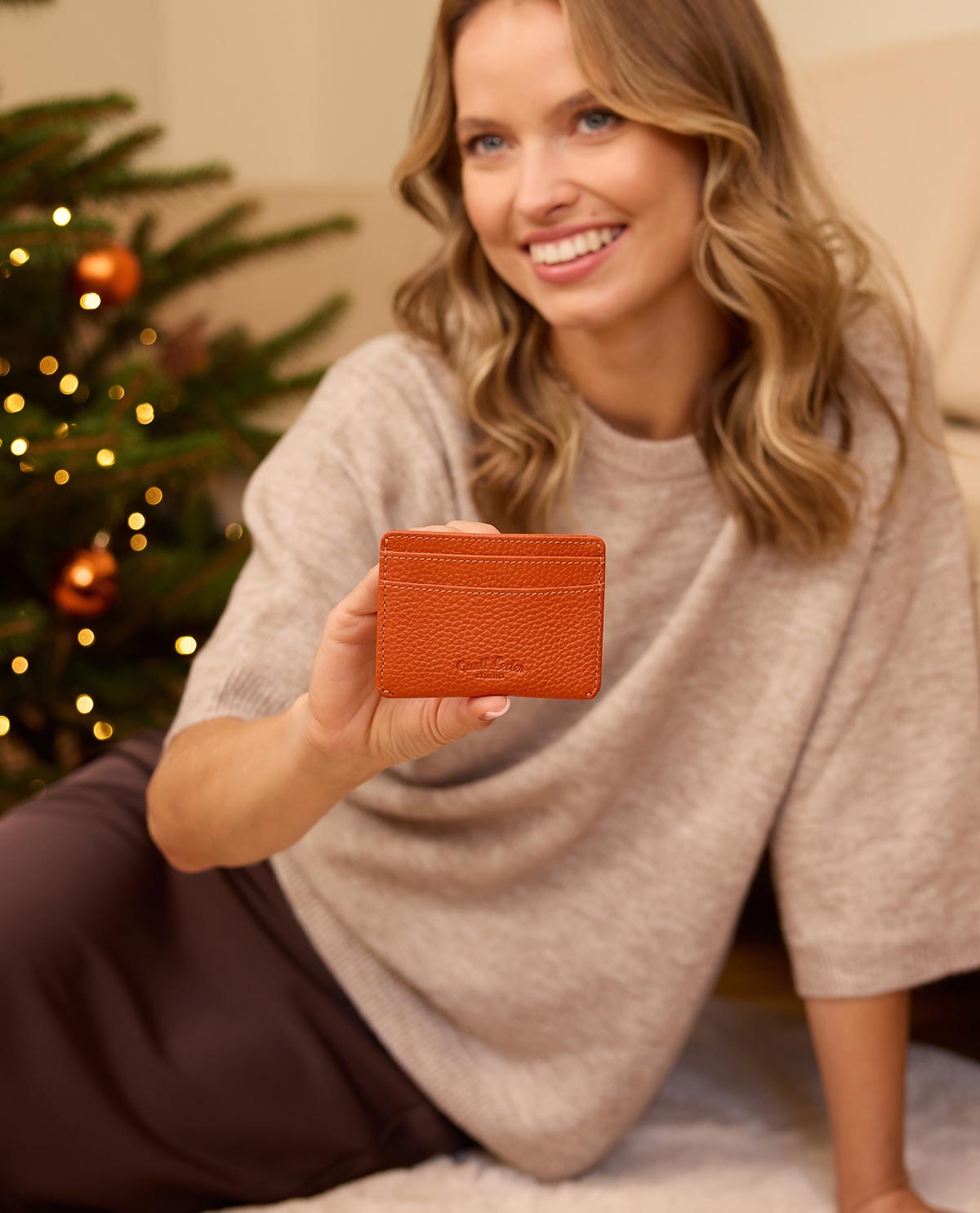Práctico y elegante – el tarjetero "Qani" de cuero naranja