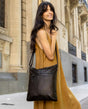Bandolera piel bolso cuero mujer shopper negro cuero