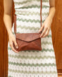 Bandolera piel bolso fiesta noche cuero mujer marrón cuero