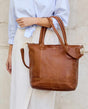 Bolso cuero mujer shopper piel bolso asas marrón cuero