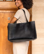 Bolso cuero mujer shopper de piel bolso asas negro cuero