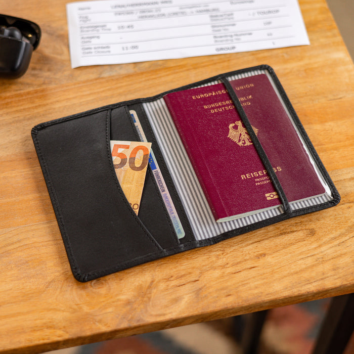 2. ¡Esconde tus objetos de valor!Si tienes todo en un solo lugar, es muy fácil que te lo quiten todo. Por eso deja algunos objetos de valor en el hotel: guárdalos en un lugar seguro, por ejemplo, la caja fuerte del hotel o en el doble fondo de tu maleta. Un porta pasaporte con tarjetero también protege tus documentos y los mantiene juntos. También mientras estés fuera, deberías llevar una parte, por ejemplo, en la riñonera o mochila, y otra parte en el bolsillo interior de tu chaqueta o en el bolsillo delantero de tus pantalones. Consejo extra: prepara dinero de antemano para pagar cosas pequeñas. Así no tienes que sacar constantemente tu billetera y ofreces menos oportunidades a los ladrones.