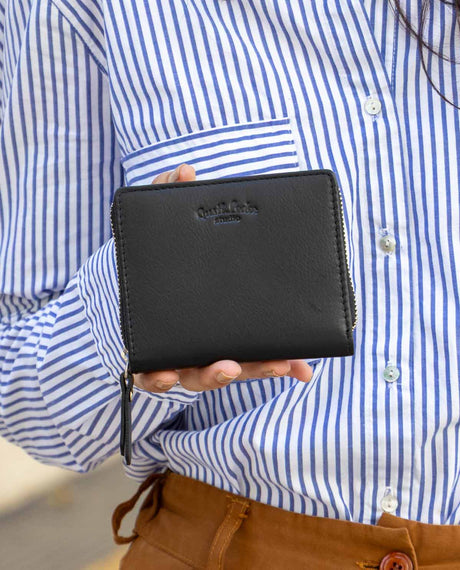 Un bolso negro es un básico de armario tanto como el famoso “little black dress”. Nuestro "Maisie" no solo ofrece un diseño discreto, sino que es el complemento perfecto para cualquier look, ya sea para el día a día o para ocasiones especiales. Con espacio suficiente para tu cartera, móvil, llaves, una libreta o un neceser, te ofrece todo lo que necesitas. Gracias a los bolsillos laterales y un compartimento interior adicional con cremallera, siempre tendrás todo organizado. "Maisie" te asegura salir de casa bien equipada y con mucho estilo, sin renunciar a la funcionalidad. Inspirado en el encanto cosmopolita de Berlín, refleja el chic urbano.