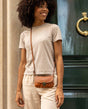 ¿Sólo tienes que salir por poco tiempo y no quieres llevar un bolso grande? ¿Qué tal "Rona"? El pequeño bolso de cuero de aspecto vintage de moda no es pesado, pero puede contener el teléfono móvil, las llaves y la cartera. También es perfecto si sólo quieres dar un paseo rápido pero tu vestido no tiene bolsillos. "Rona" queda especialmente guapa con bonitos vestidos de flores. Pero "Rona" también queda bien con las combinaciones clásicas de jeans y jersey. Su sencilla elegancia complementa cualquier conjunto con estilo, pero nunca parece "demasiado".