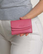 Cartera de piel vintage monedero billetera tarjetero porta tarjetas mujer rosa cuero