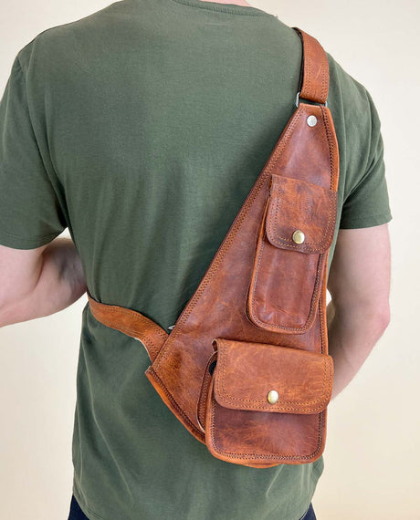 Riñonera piel pequeña bolsa cinturón festivales marrón cuero